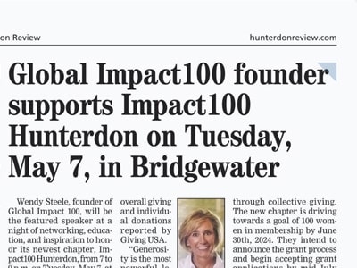 Click here to read about the new Hunterdon Chapter of Impact 100 & their plans to empower women to do philanthropic work in the Community.